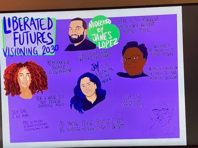 A coordenadora de Incidência Política e Litigância Estratégica de Peregum, Ágatha de Miranda, participou da mesa “Liberated Futures: Visioning 2030”, ao lado de Krystal Redman, diretora-executiva da Spark Reproductive Justice Now; Daisy Maxion, organizadora da Filipino Advocates for Justice; Donavon Taveras, diretor de programas da El Puente; e James Lopez, diretor-executivo da Power U.