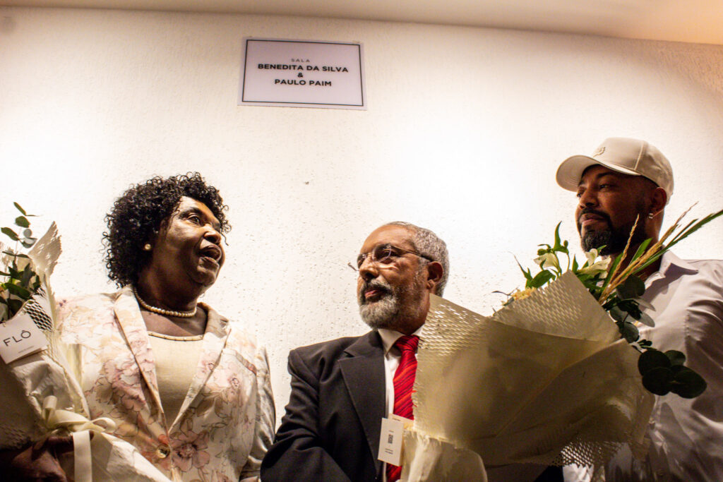 A sala principal do espaço foi nomeada como “Sala Benedita da Silva e Paulo Paim” em homenagem às contribuições históricas da deputada federal e do senador que lutaram em nome do movimento negro na constituinte. A condecoração contou com a participação emocionante das duas autoridades que, através de um gesto simbólico, retiraram o véu da placa.